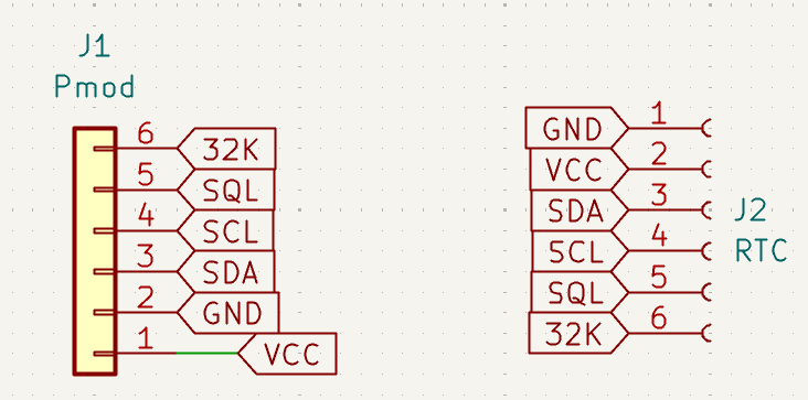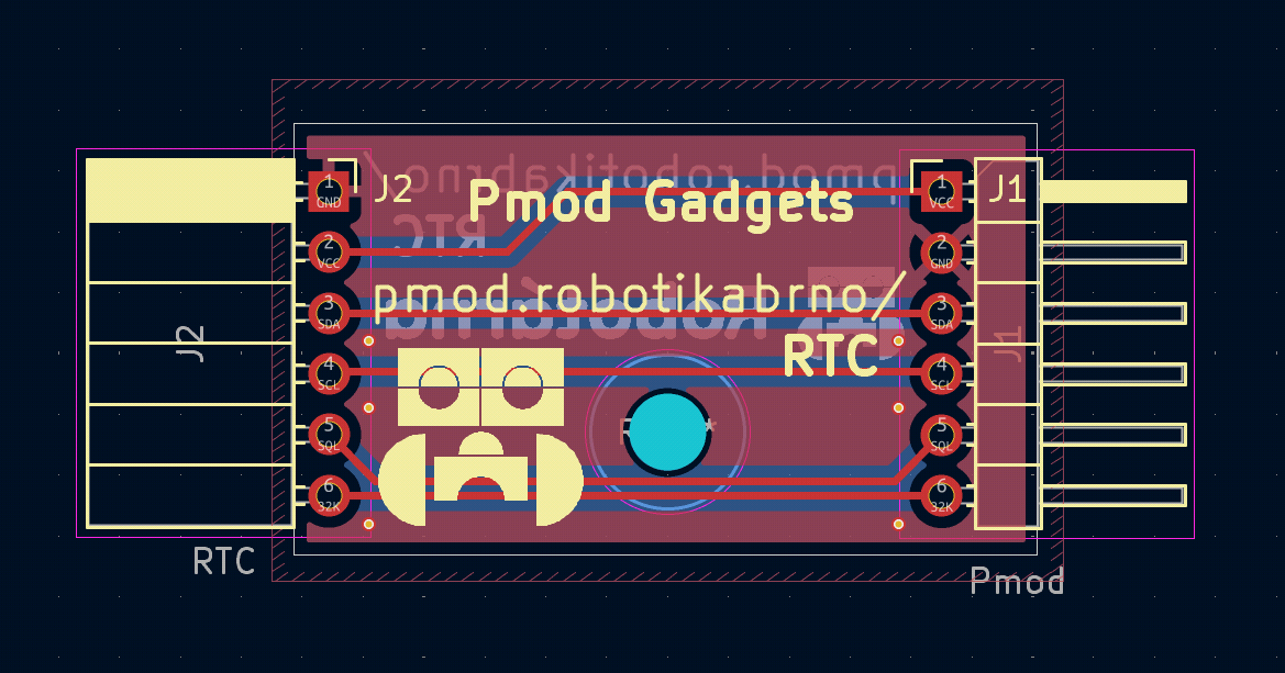 RTC modul¤ Modul k propojení RTC s hlavní deskou pomocí PMOD konektoru. Použité RTC je RTC-3231. Jsou potřeba 4 piny + napájení: - VCC (3.3V) - GND (zem) - SCL (Serial Clockv Line) - SDA (Serial Data line) + 32k + SQW