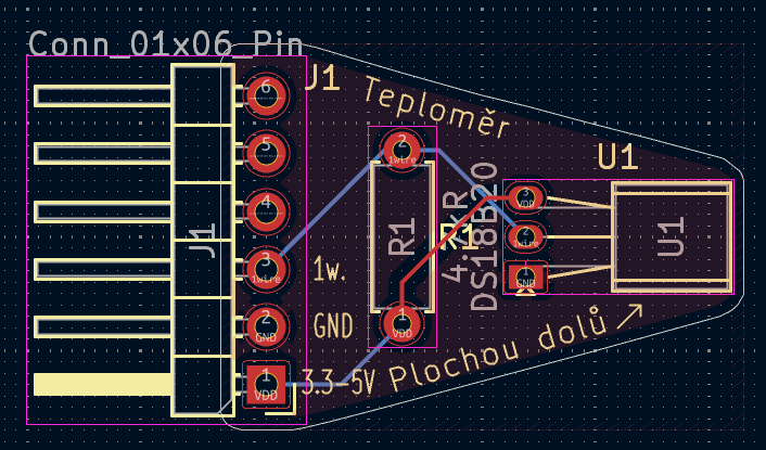 Senzor teploty¤ Senzor teploty založený na DS18B20 Využívá napájení a 1 pin¤ 1wire – komunikace s DS18B20